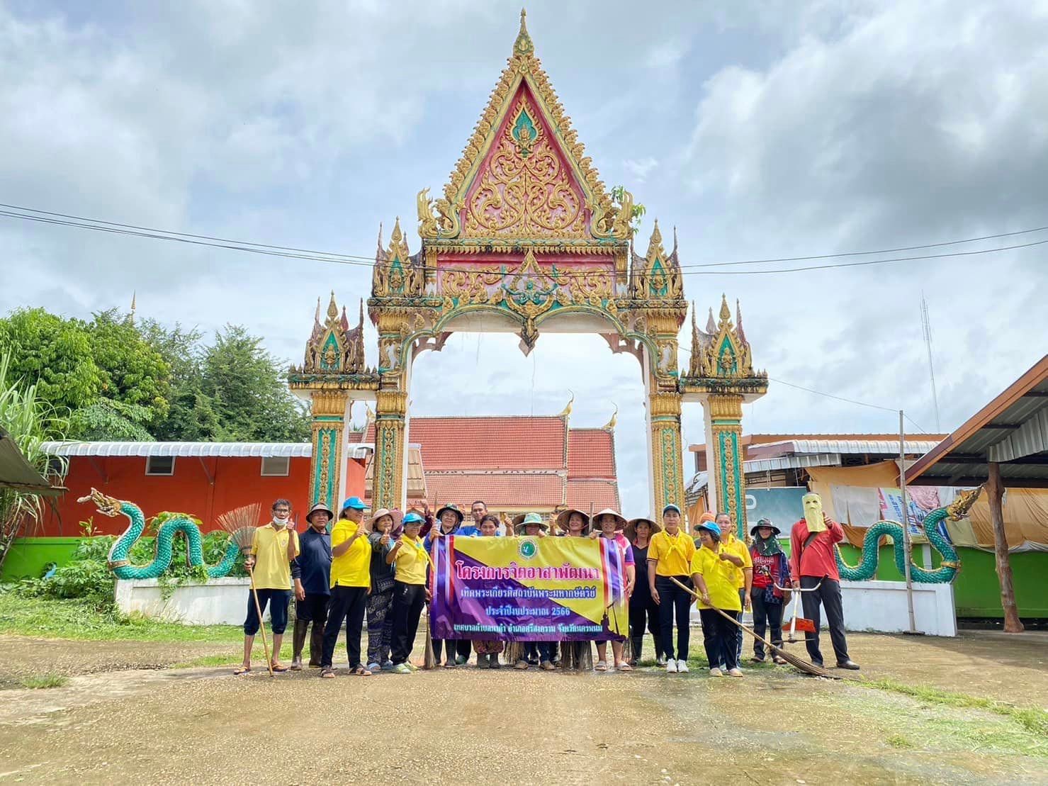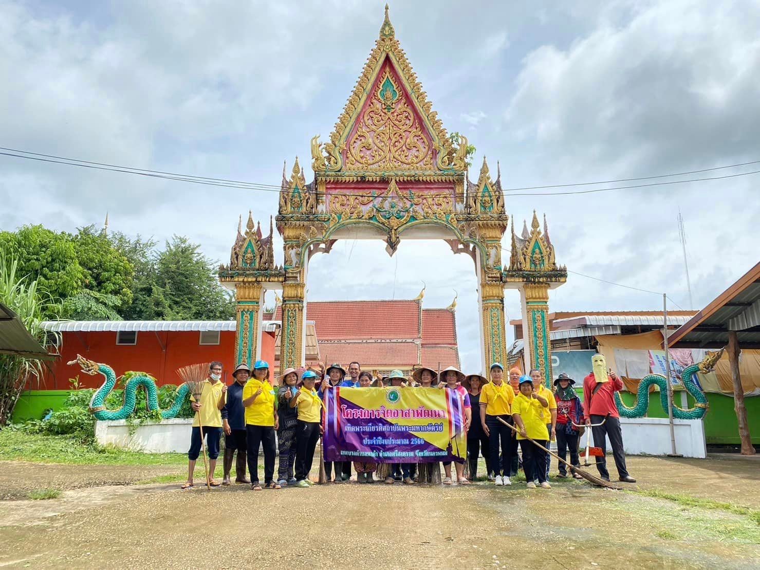 นายสมัย สมรฤทธิ์ รองนายกเทศมนตรีตำบลนาคำ2 เป็นประธานเปิดโครงการจิตอาสาพัฒนา เทิดพระเกียรติสถาบันพระมหากษัตริย์ ประจำปีงบประมาณ 2566 บูรณาการร่วมกับเทศบาลตำบลนาคำ ทางหลวงชนบท ผู้นำชุมชน โรงเรียนบ้านเหล่าและวัดบ้านคำสะอาด