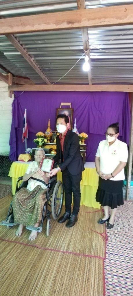 วันพฤหัสบดี ที่ 27 ตุลาคม 2565 เวลา 10.30 น.สมาคมสภาผู้อายุแห่งประเทศไทย จังหวัดนครพนม ทำพิธีมอบโล่ผู้สูงอายุ 100 ปีขึ้นไป โดยมี นายธวัชชัย ศรีทอง รองนายกเทศมนตรีตำบลนาคำ เจ้าหน้าที่กองสวัสดิการสังคมเข้าร่วมพิธีมอบโล่ให้คุณยายกี่ เกลาเกลี้ยง อายุ 104 ปี ณ บ้านเลขที่ 219 ม.13 บ้านภูกระแต ตำบลนาคำ อำเภอศรีสงคราม จังหวัดนครพนม