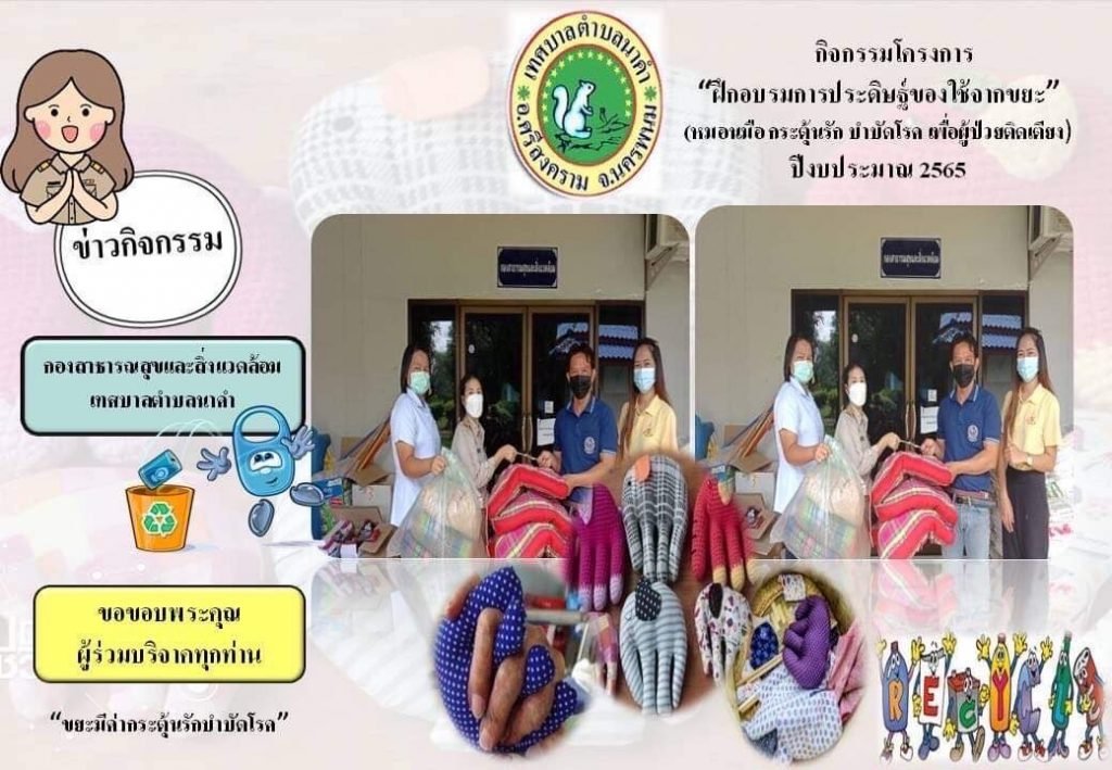 เทศบาลตำบลนาคำ ขอขอบพระคุณผู้ร่วมบริจาคขยะรีไซเคิลทุกท่านที่ร่วมบริจาคส่งเสริมกิจกรรมในครั้งนี้ ซึ่งยังรับบริจาค นุ่น หมอน ใยสังเคราะห์ ตุ๊กตา ที่ไม่ได้ใช้แล้ว เพื่อจัดทำหมอนมือ(คุณช้างจับมือ)เพื่อผู้ป่วยติดเตียง จนถึงวันที่ 23 สิงหาคม 2565 และจะดำเนินกิจกรรมโครงการในวันพุธที่ 24 สิงหาคม 2565 นี้