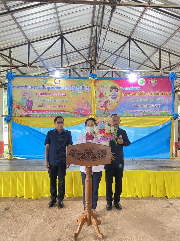 นางพูนสุข โพธิ์สุ อดีตรองนายกองค์การบริหารส่วนจังหวัดนครพนม เป็นประธานพิธีเปิดโครงการฮักแพงแบ่งปันทุกวันขยับกาย ผู้สูงวัยเป็นสุข (ศูนย์ฮักแพงแบ่งปัน)และโครงการส่งเสริมเสริมการออกกำลังกายในวัยทำงาน ประจำปีงบประมาณ 2565 พร้อมคณะผู้บริหาร สมาชิกสภาเทศบาล พนักงานเทศบาลและแขกผู้มีเกียรติ