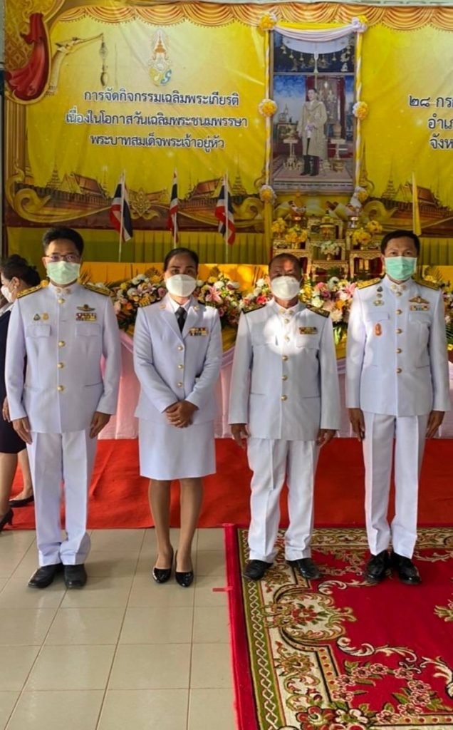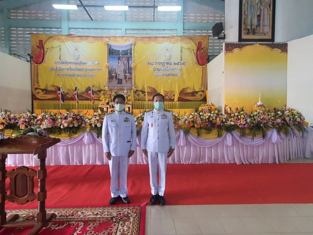 นายสุบิน สมรฤทธิ์ นายกเทศมนตรีตำบลนาคำ พร้อมคณะผู้บริหาร หัวหน้าส่วนราชการ พนักงานเทศบาล ร่วมกิจกรรมเฉลิมพระเกียรติพระบาทสมเด็จพระเจ้าอยู่หัว เนื่องในโอกาสวันเฉลิมพระชนมพรรษา 28 กรกฎาคม 2565 ณ หอประชุมอำเภอศรีสงคราม