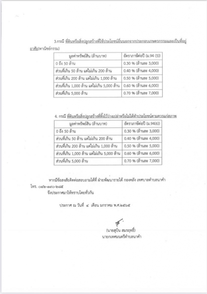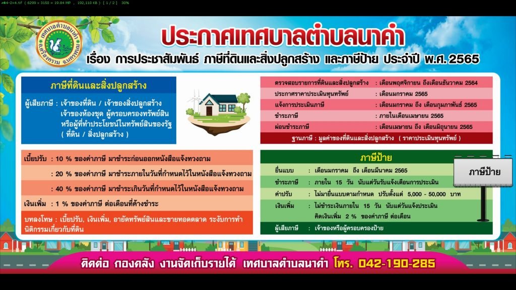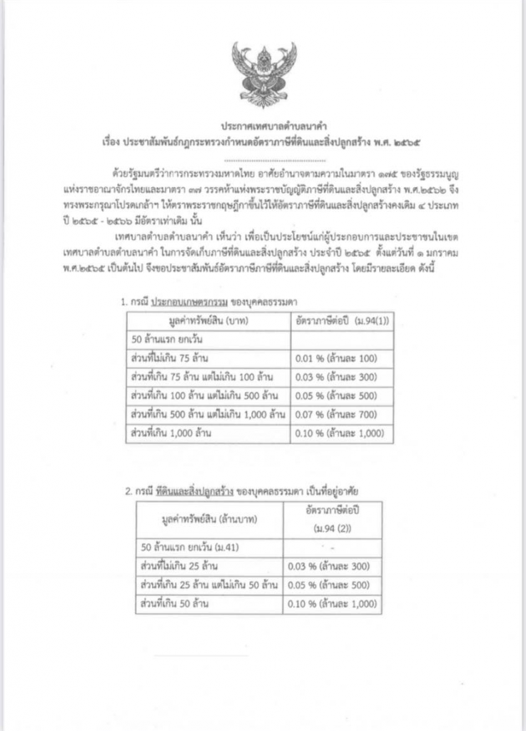 ประชาสัมพันธ์กำหนดอัตราภาษีที่ดินและสิ่งปลูกสร้าง พ.ศ. 2565