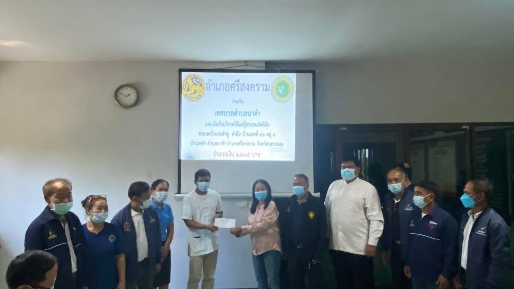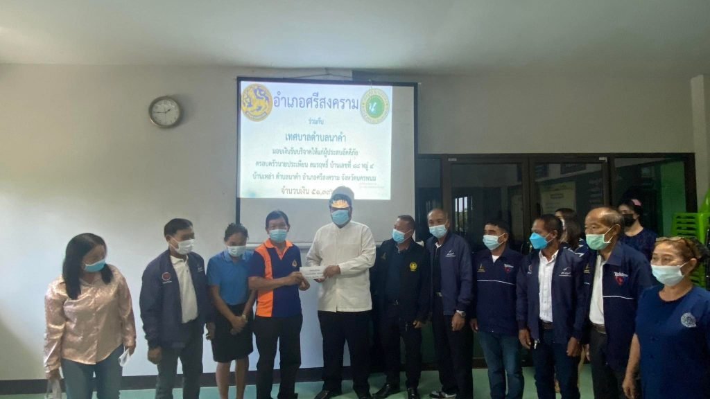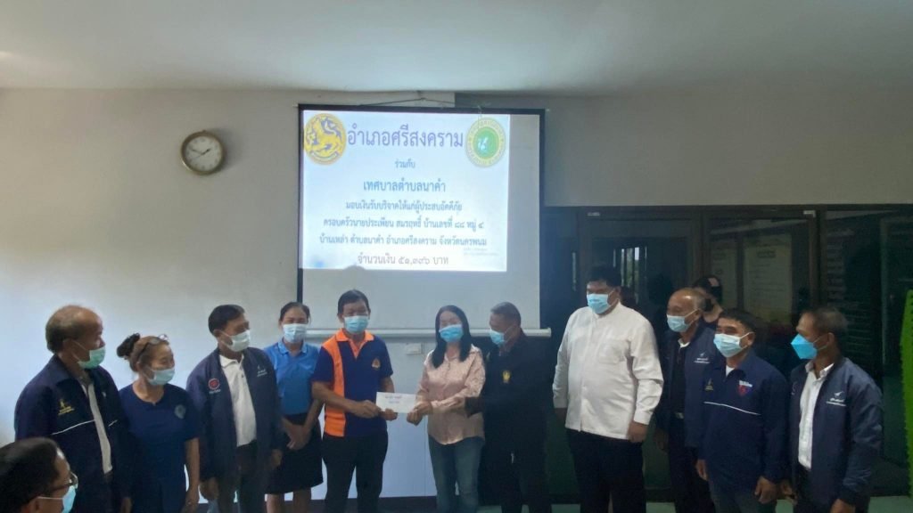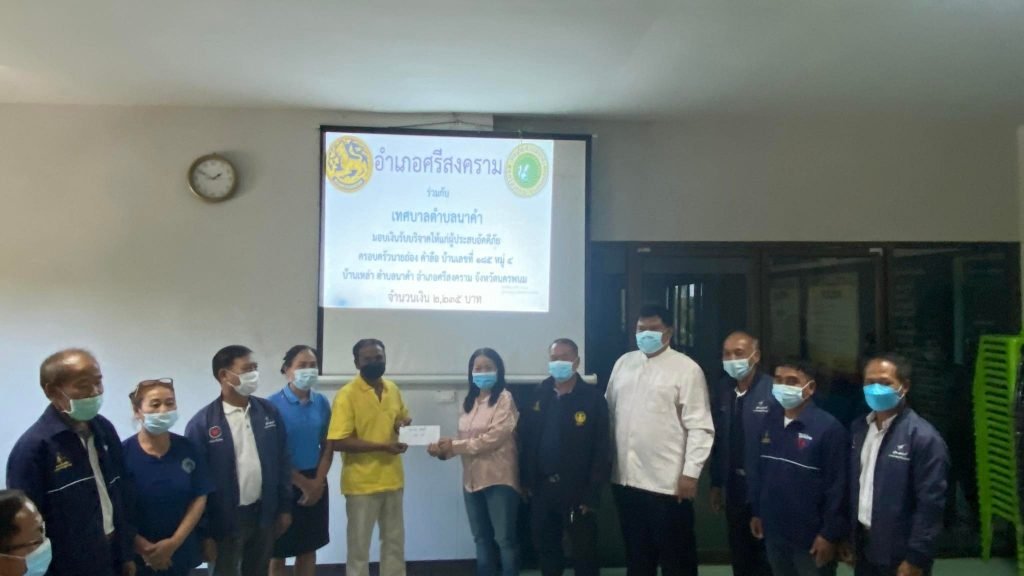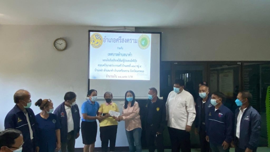 วันศุกร์ ที่ 19 พฤศจิกายน 2564 เวลา 13.30 น. นายธวัช พรมโสภา นายอำเภอศรีสงคราม เป็นประธานในพิธีมอบเงินรับบริจาคให้แก่ผู้ประสบอัคคีภัย บ้านเหล่า หมู่ 4 จำนวน 8 หลังคาเรือน ยอดบริจาคทั้งสิ้น 223,461 บาท มีการจัดสรรปันส่วนเงินรับบริจาคดังนี้จัดสรรให้ผู้ประสบอัคคีภัย (เสียหายทั้งหลัง)1. นายพรชัย คำลือ จำนวเงิน 51,396 บาท2. นายประเพียน สมรฤทธิ์ จำนวนเงิน 51,396 บาท3. นายสิงหา ชินบูรณณ์ จำนวนเงิน 51,396 บาท4. นายนี สมรฤทธิ์ จำนวนเงิน 51,396 บาทจัดสรรให้ผู้ประสบอัคคีภัย (เสียหายบางส่วน)1. นางสว่าง กวนศรี จำนวนเงิน 11,173 บาท2. นายลำพู คำลือ จำนวนเงิน 2,235 บาท3. นางสาวพิมลวรรณ สมรฤทธิ์ 2,235 บาท4. นายถ่อง คำลือ จำนวนเงิน 2,235 บาททั้งนี้นายสุบิน สมรฤทธิ์ นายกเทศมนตรีตำบลนาคำ และนางประนม สมรฤทธิ์ ภรรยาได้มอบเงินส่วนตัวช่วยเหลือผู้ประสบอัคคีภัย ทั้ง 8 หลังคาเรือน เป็นจำนวนเงิน 10,500 บาท ณ ห้องประชุมสภาเทศบาลตำบลนาคำ อำเภอศรีสงคราม จังหวัดนครพนม