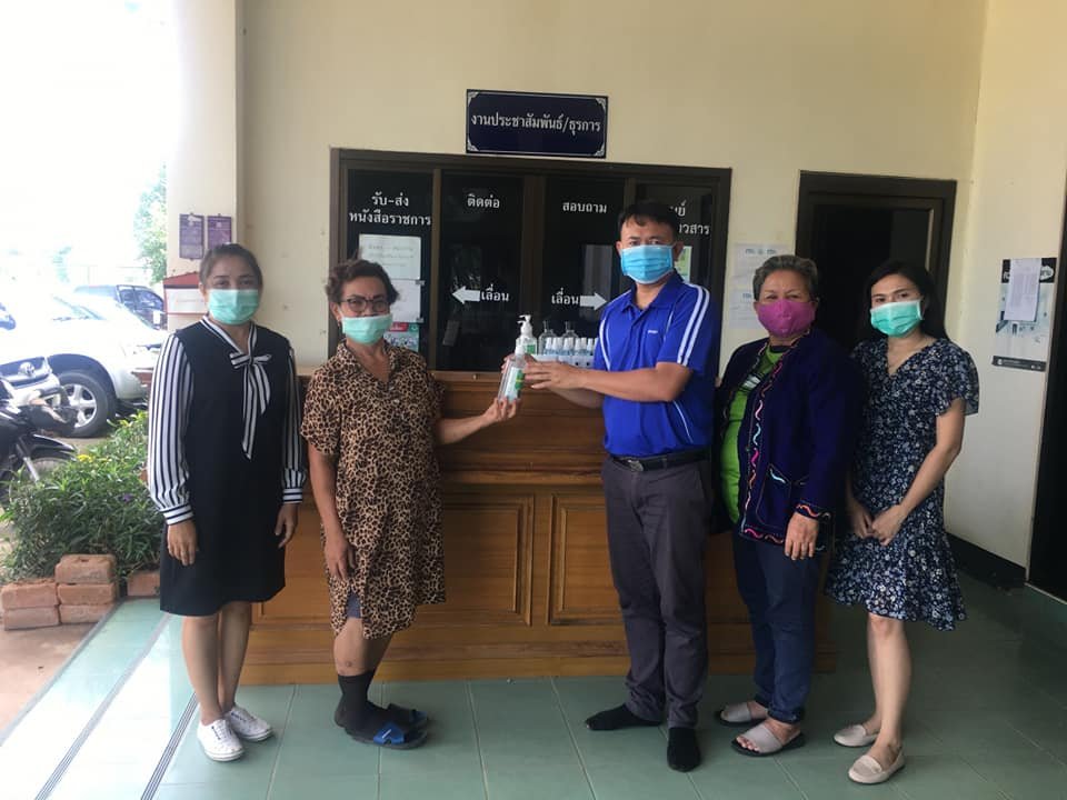 เทศบาลตำบลนาคำ รับมอบบริจาค เจลแอลกอฮอล์ล้างมือ