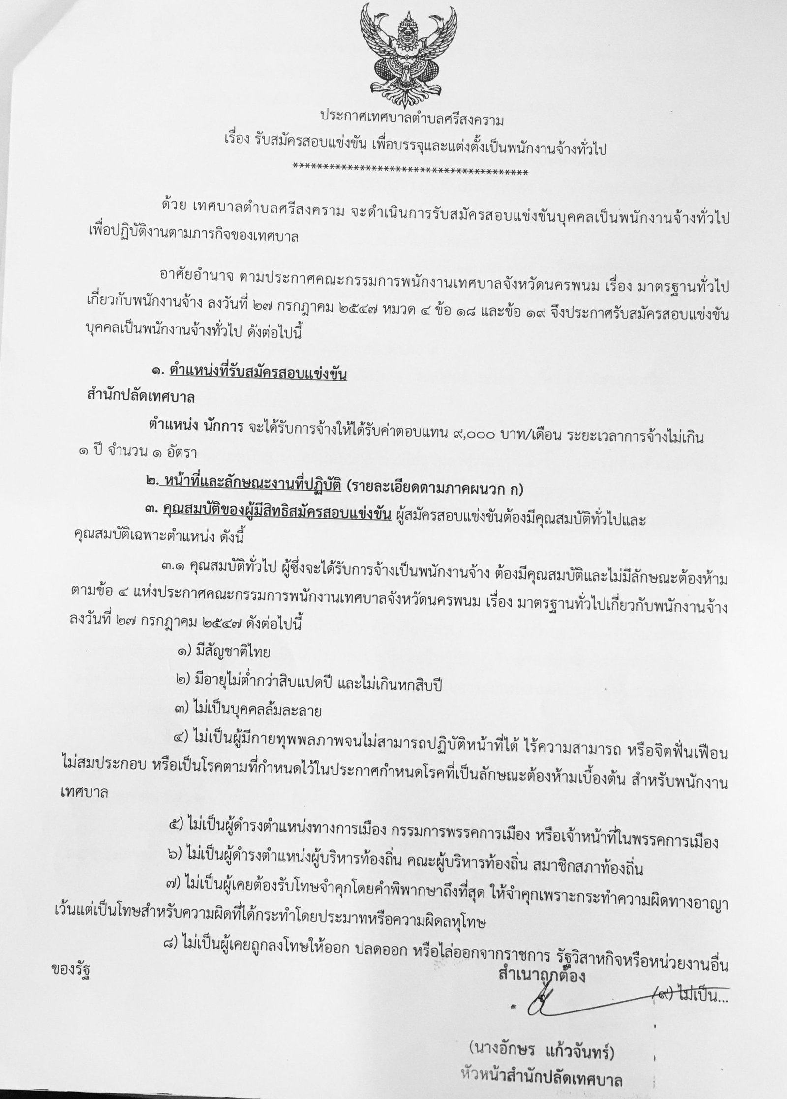 ข่าวประกาศ ประกาศเทศบาลตำบลนาคำ ประกาศรับสมัครงาน