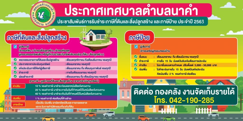 ประชาสัมพันธ์การรับชำระภาษีที่ดินและปลูกสร้าง และภาษีป้าย ประจำปี 2563