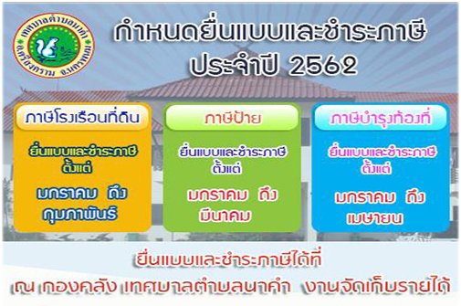 ประชาสัมพันธ์กำหนดการยื่นแบบและชำระภาษี ประจำปี 2562