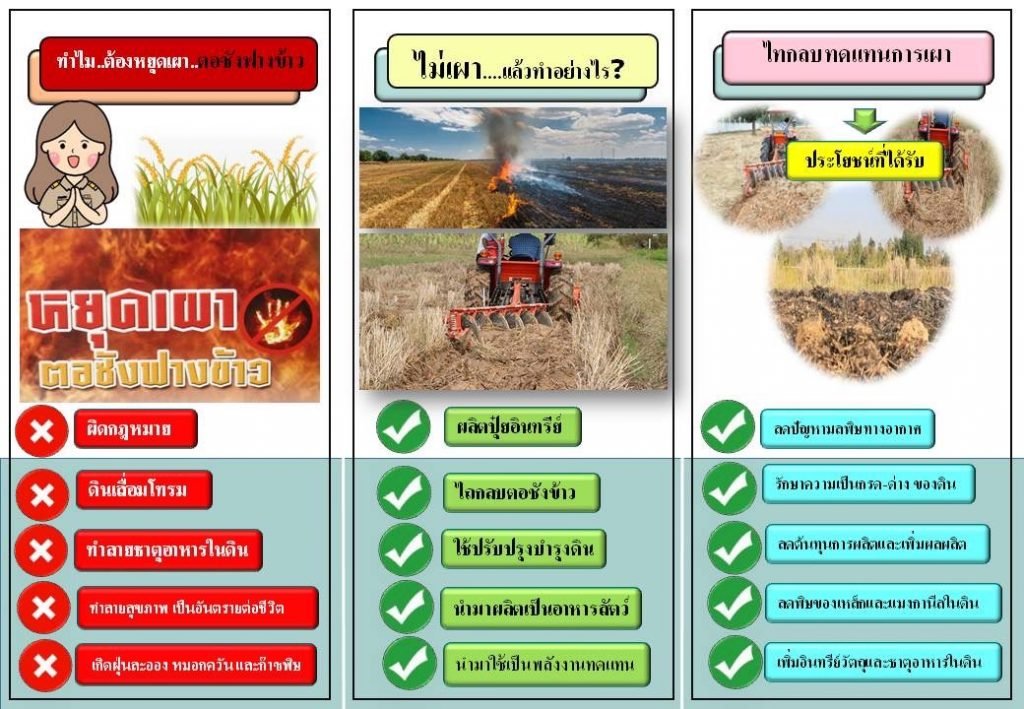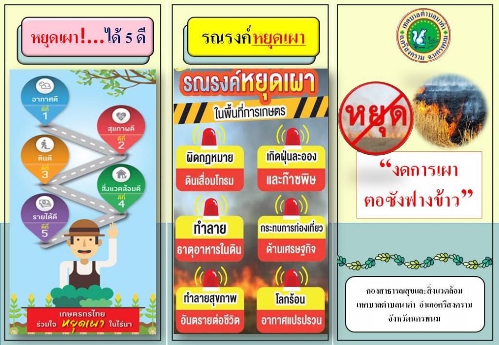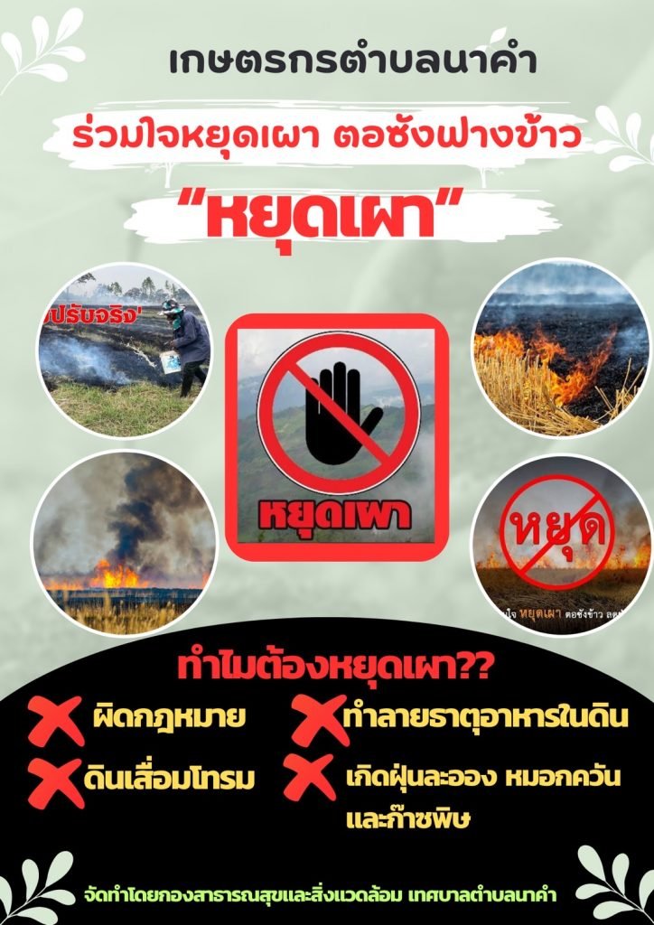 ประชาสัมพันธ์ขอความร่วมมือเกษตรกรชาวตำบลนาคำ งดการเผาตอซังฟางข้าว เพื่อลดปัญหาฝุ่น PM2.5 ที่ส่งผลกระทบต่อสุขภาพของประชาชนตำบลนาคำ