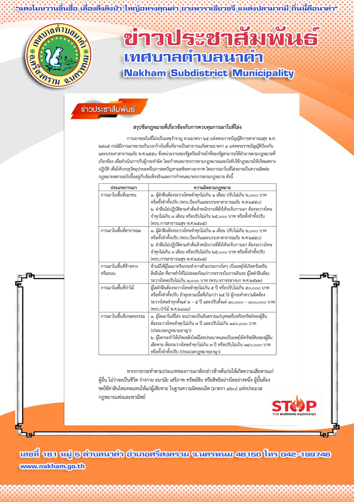 สรุปข้อกฎหมายที่เกี่ยวข้องกับการควบคุมการเผาในที่โล่ง