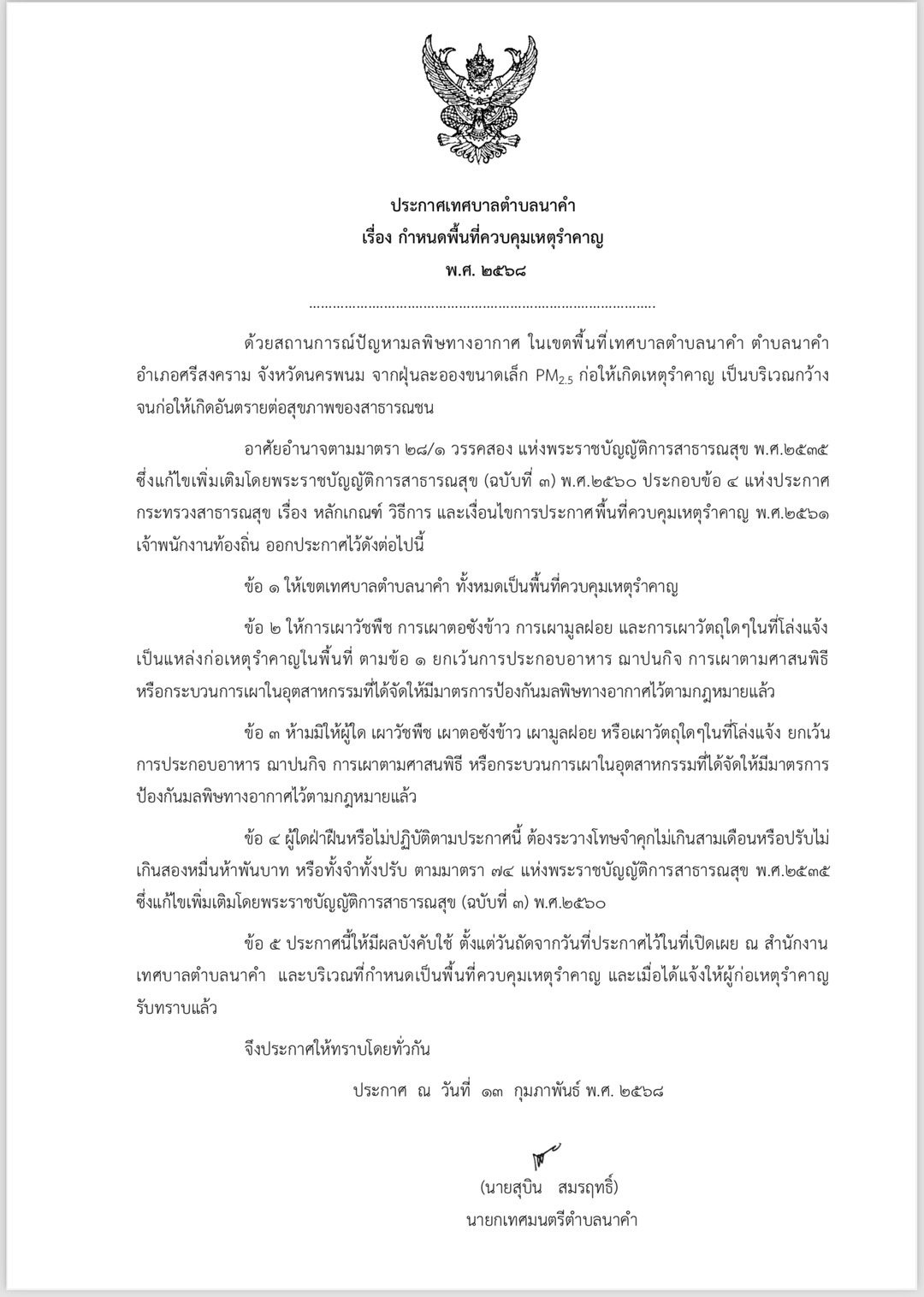 ประชาสัมพันธ์ เรื่อง กำหนดพื้นที่ควบคุมรำคาญ พ.ศ. 2568