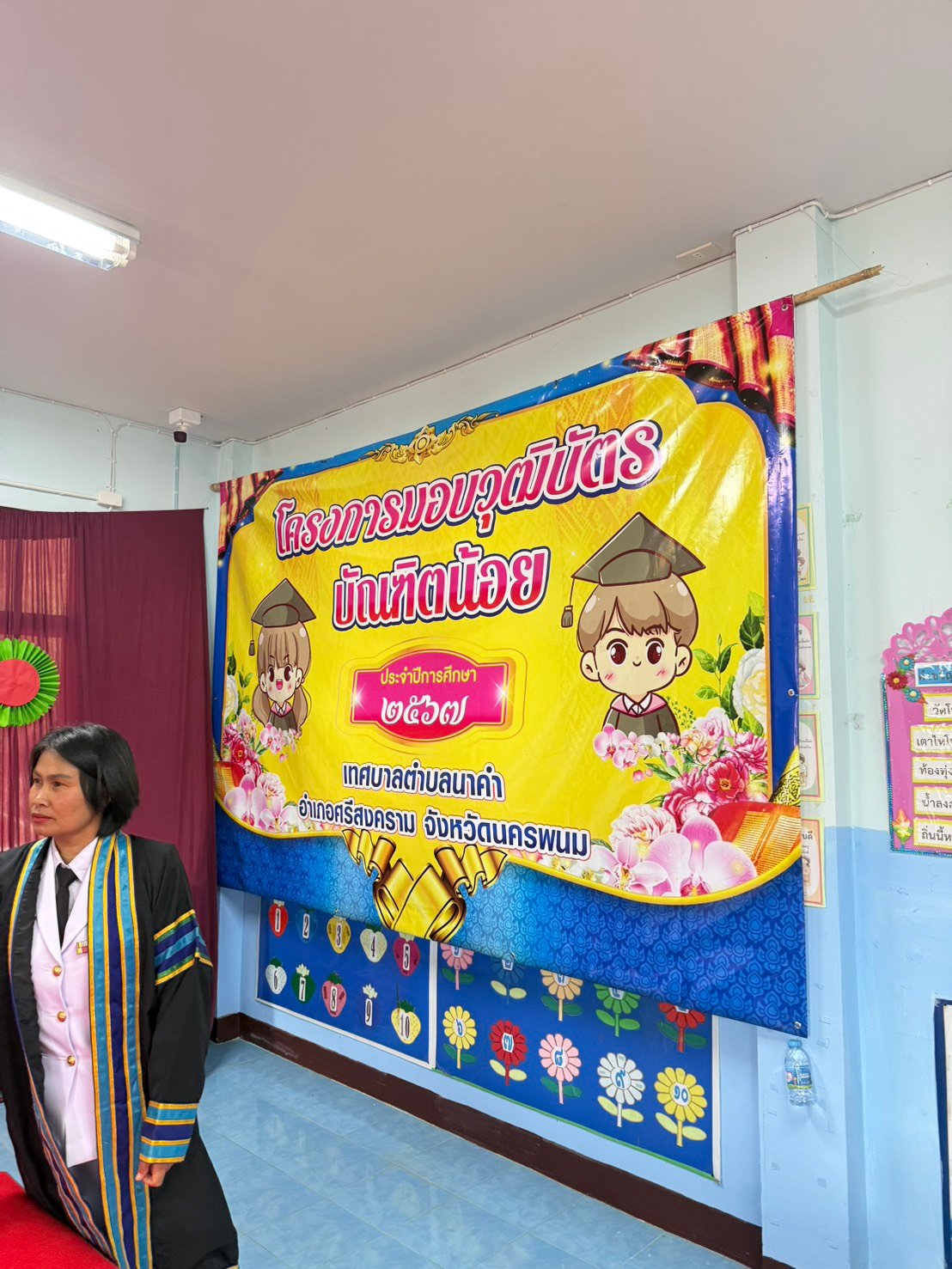 วันศุกร์ ที่ 21 มีนาคม 2568 เวลา 09.00 น. เป็นต้นไป นายธวัชชัย ศรีทอง รองนายกเทศมนตรีตำบลนาคำ1 เป็นประธานในพิธีเปิดโครการมอบวุฒิบัตร บัณทิตน้อย ประจำปีงบประมาณ 2567