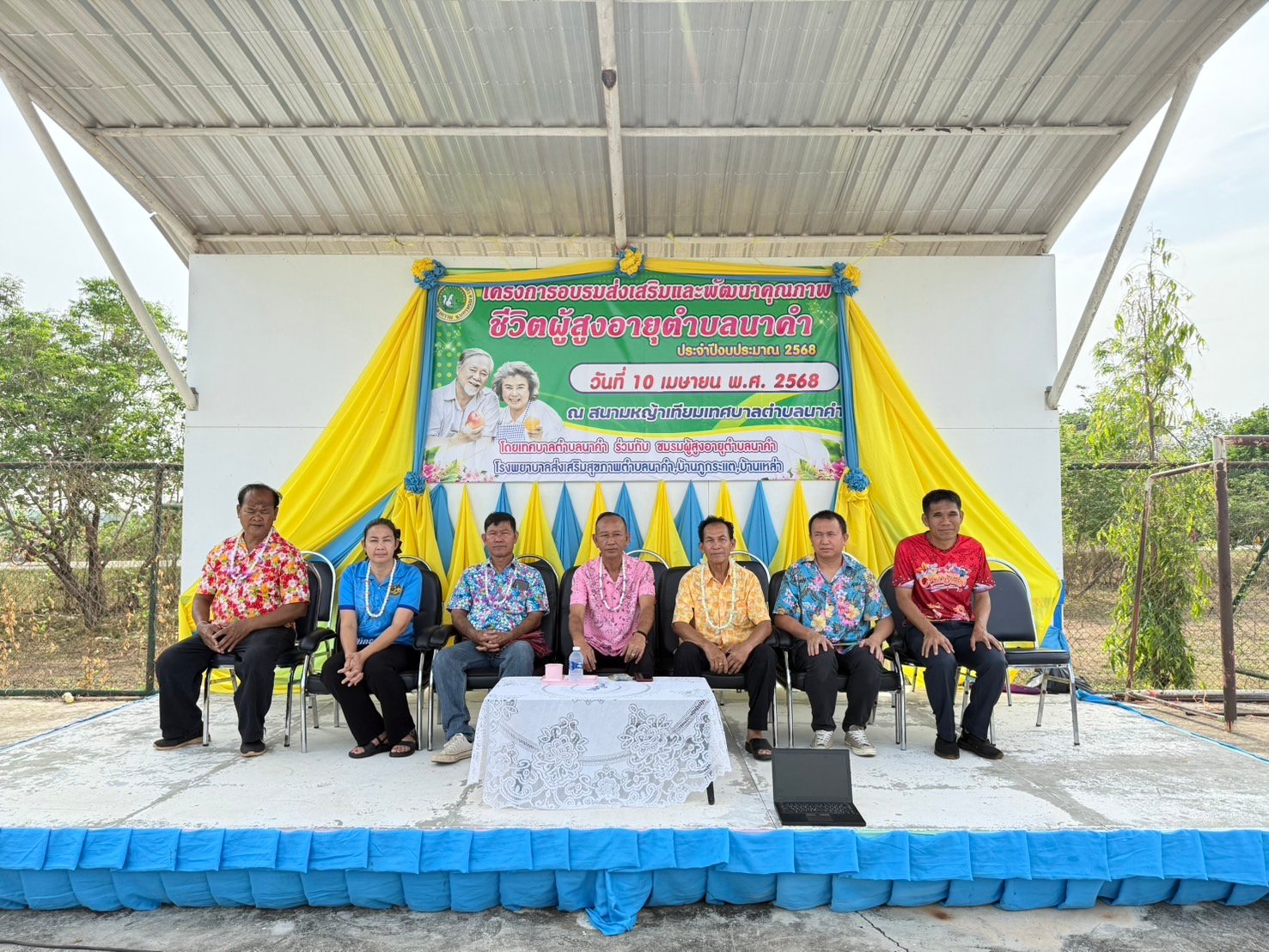 นายทันใจ ณ รังศรี สมาชิกสภาองค์การบริหารส่วนจังหวัดนครพนม เป็นประธานในพิธีเปิดโครงการอบรมส่งเสริมและพัฒนาคุณภาพชีวิตผู้สูงอายุตำบลนาคำ ประจำปีงบประมาณ 2568 จัดโดยเทศบาลตำบลนาคำ ร่วมกับชมรมผู้สูงอายุตำบลนาคำ โรงพยาบาลส่งเสริมสุขภาพตำบลนาคำ,บ้านภูกระแต,บ้านเหล่า ณ สนามหญ้าเทียมตำบลนาคำ