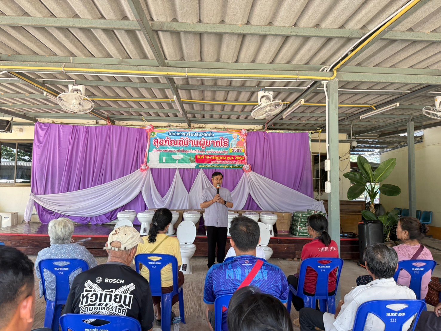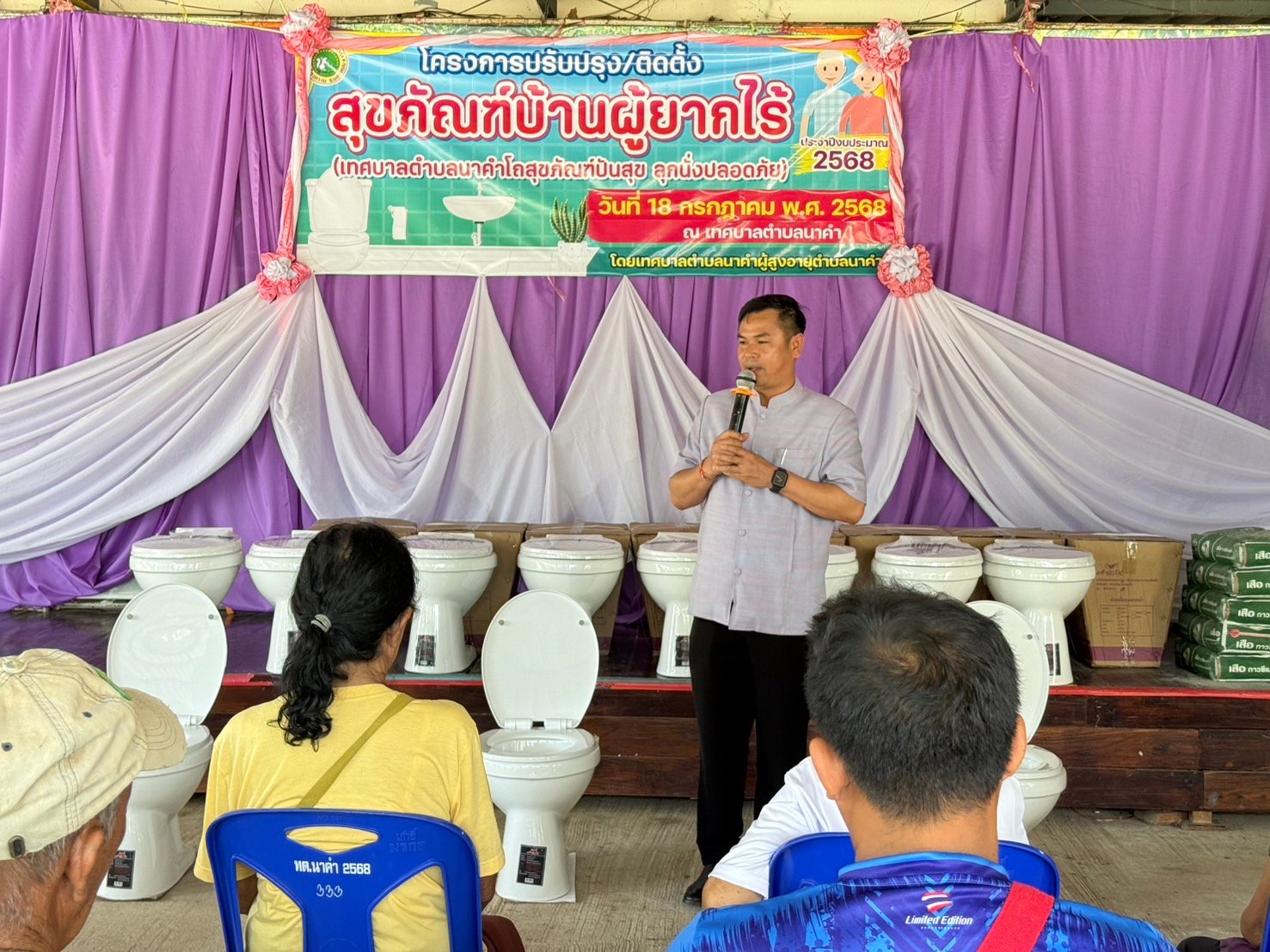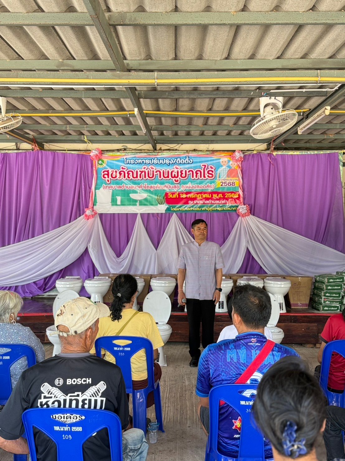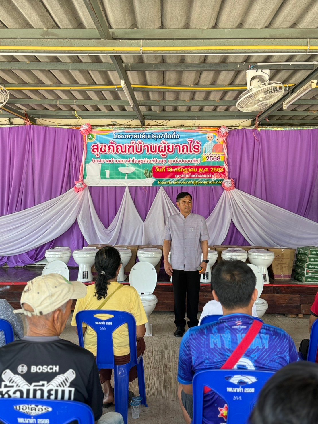วันศุกร์ ที่ 18 กรกฎาคม 2568 เวลา 09.30 น. นายธวัชชัย ศรีทอง นายกเทศมนตรีตำบลนาคำ เป็นประธานพิธีเปิด โครงการปรับปรุง/ติดตั้งสุขภัณฑ์บ้านผู้ยากไร้ (เทศบาลตำบลนาคำโถสุขภัณฑ์ปันสุข ลุกนั่งปลอดภัย) ประจำปีงบประมาณ 2568 โดยได้มอบโถสุขภัณฑ์ให้กับบ้านผู้ยากไร้ จำนวน 19 หลังคาเรือน