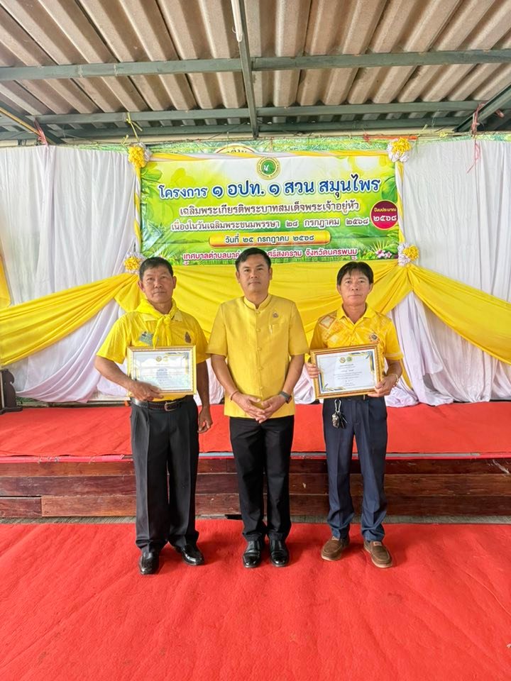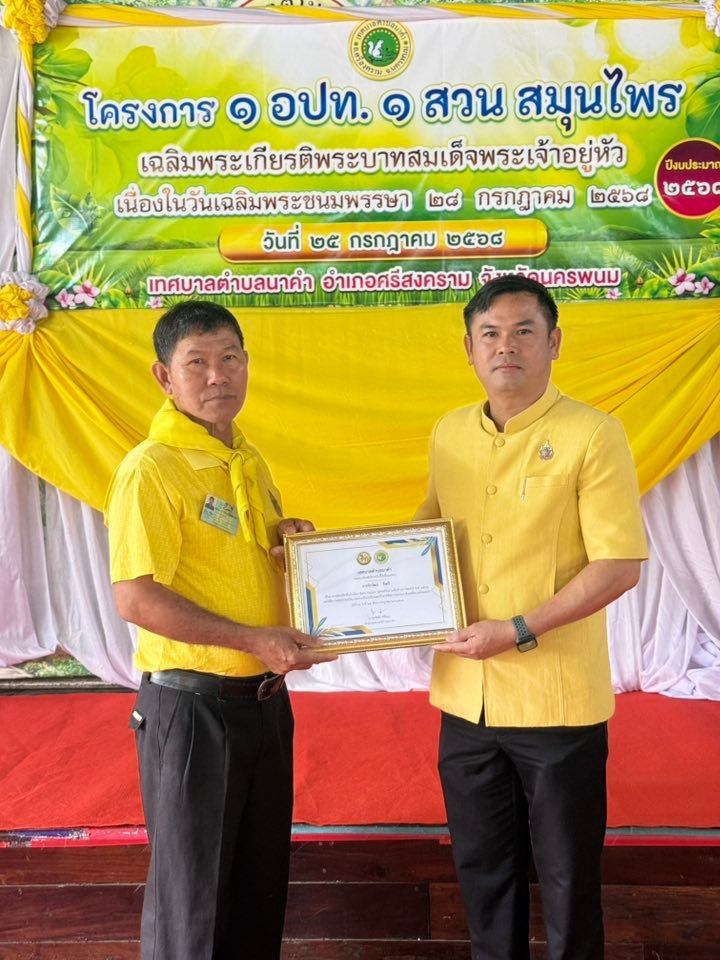วันศุกร์ที่ 25 กรกฏาคม 2568 เวลา 09.00 น. นายธวัชชัย ศรีทอง นายเทศมนตรีตำบลนาคำ เป็นประธานพิธีเปิดโครงการ 1 อปท 1 สวนสมุนไพร เฉลิมพระเกียรติพระบาทสมเด็จพระเจ้าอยู่หัวเนื่องในวันเฉลิมพระชนพรรษา 28 กรกฎาคม ประจำปีงบประมาณ 2568 พร้อมคณะผู้บริหาร สมาชิกสภา เจ้าหน้าที่เทศบาลตำบลนาคำ ผอ. รพสต. ทั้ง 3 แห่ง กำนัน ผู้ใหญ่บ้าน และ อสม.ประจำตำบลนาคำ ณ ลานอเนกประสงค์เทศบาลตำบลนาคำ