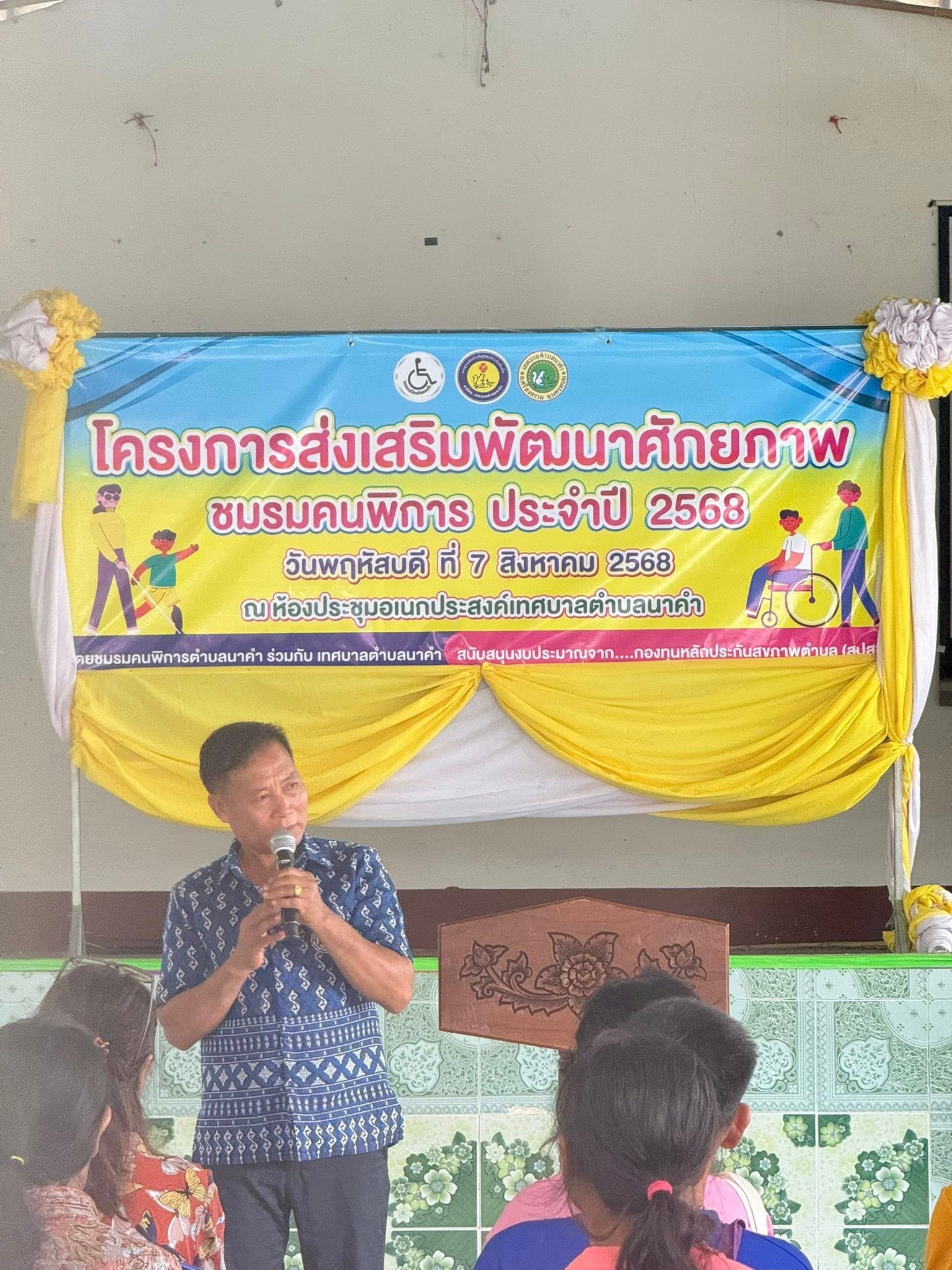 วันพฤหัสบดีที่ 7 สิงหาคม 2568 เวลา 09.30 น. นายธวัชชัย ศรีทอง นายกเทศมนตรีตำบลนาคำ เป็นประธานพิธีเปิดโครงการพัฒนาศักยภาพภาพคนพิการ ประจำปี 2568 พร้อมคณะผู้บริหาร สมาชิกสภา เจ้าหน้าที่เทศบาลตำบลนาคำ ณ อาคารอเนกประสงค์ เทศบาลตำบลนาคำ