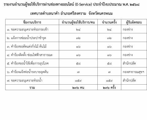รายงานจำนวนผู้ขอใช้บริการผ่านช่องทางออนไลน์ (E-Service) ประจำปีงบประมาณ พ.ศ. 2568